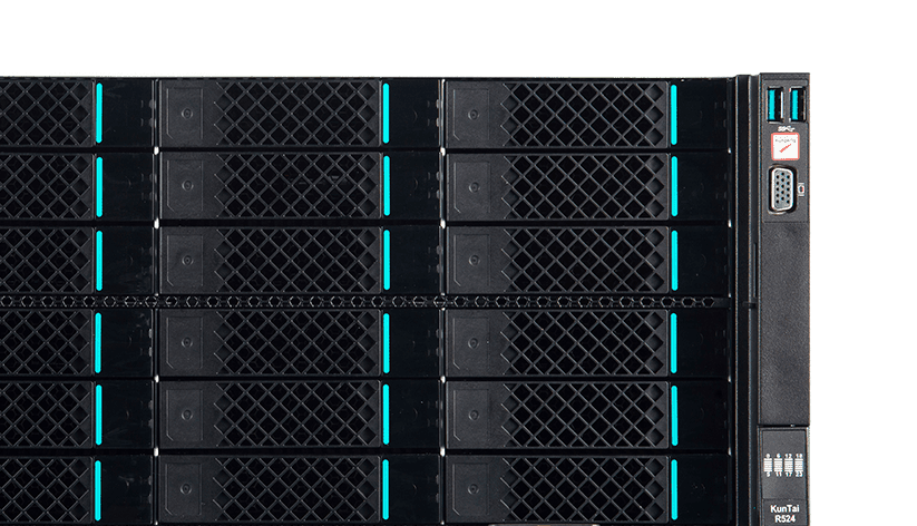 KunTai R524 存储型服务器是金狮贵宾会数码基于鲲鹏处理器推出的新一代 ARM数据中心服务器。。。。主要面向存储业务,,,具有海量存储、、、、高性能、、、、低功耗以及易扩展的特点,,,适合为大数据分析、、软件定义存 储等应用场景的工作负载进行髙效加速。。